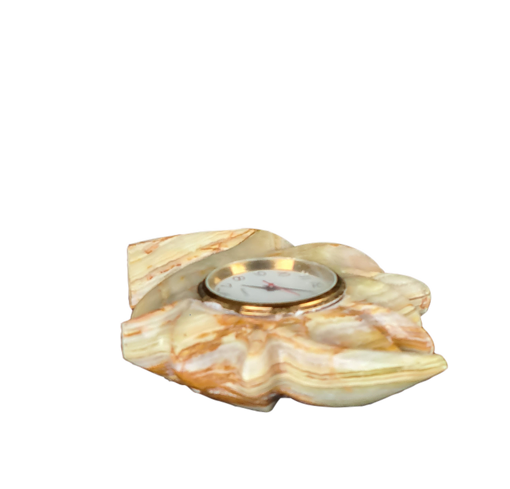 This cream brown leaf clock is handcrafted with Marble Onyx Stone. Clock is removable for battery replacment and time adjustment.