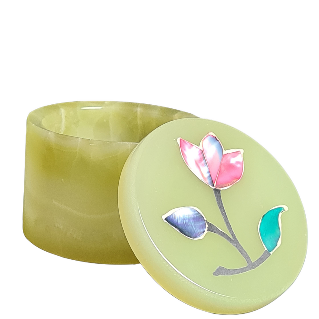 Onyx Handcarved and Handpainted Decorative Jewellery Box. Each natural stone Jewellery Box has been beautifully sculpted by hand from a single piece of stone. An impressive, unique gift or decorative home accessory..Every Unique Onyx Item Blends Natural Onyx Shades, Richly Polished for a High Gloss Finish.